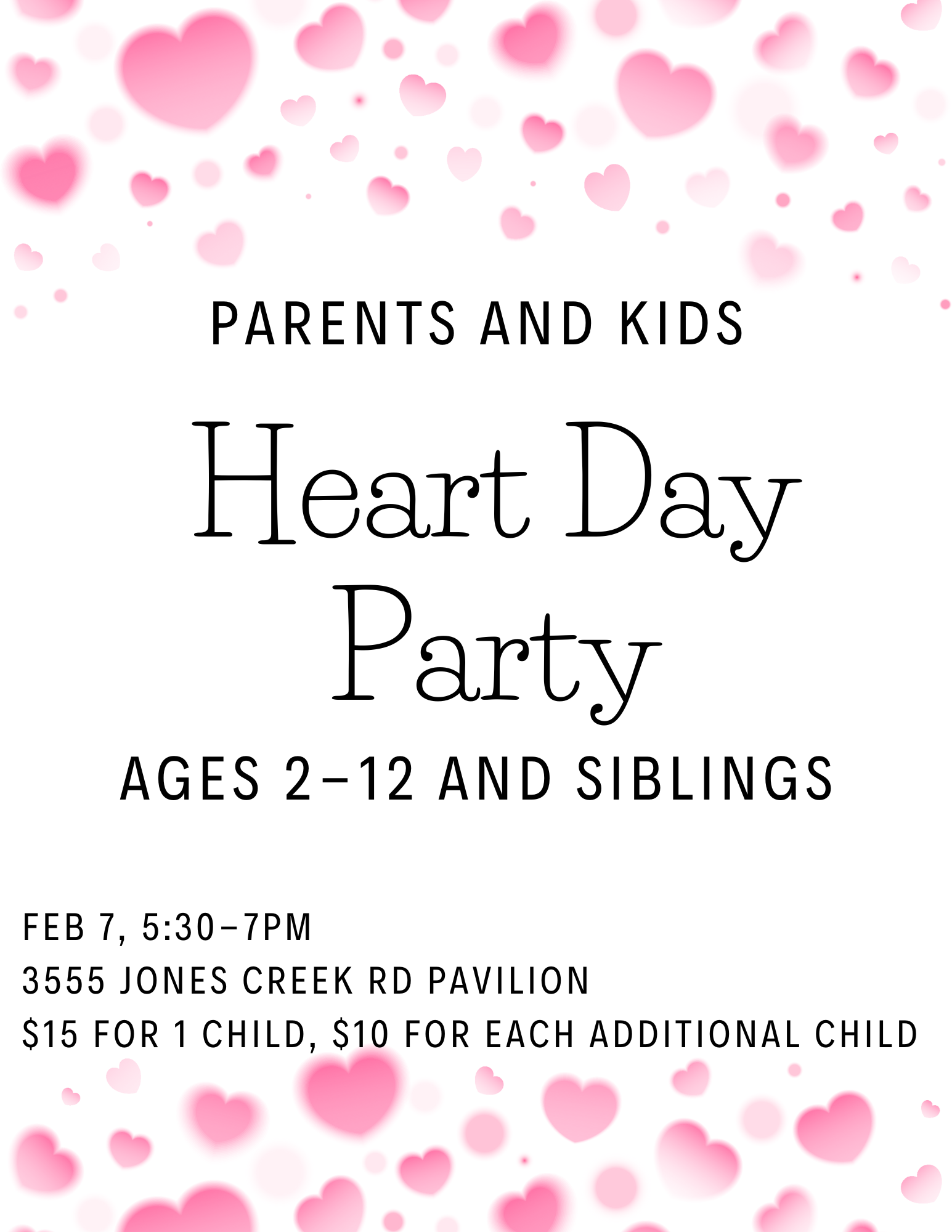 This party will be outside! This will allow our most sensitive kids some space from the noise. We will have a music area for dancing, access to the playground, heart-themed snacks, and crafts and coloring sheets. We hope you can join us! All the info is below!